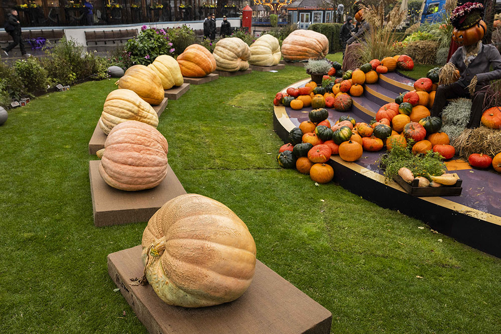 Las nueve calabazas del concurso permanecerán en exhibición hasta el 2 de noviembre, durante la temporada de Halloween de Tivoli.