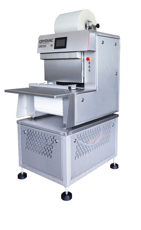El equipo Cryovac® DM 100 es un sistema compacto y semiautomático que permite a los procesadores envasar al vacío cortes de carne roja fresca, proteínas vegetales, cortes avícolas, mariscos, carnes procesadas y quesos en charolas preformadas y con películas plásticas que se adaptan a las necesidades que tiene cada tipo de proteína. El innovador equipo Cryovac® DM 100 tiene una capacidad de producción de hasta diez paquetes por minuto, lo que lo convierte en un equipo compacto, fácil de utilizar y sobre todo, que no requiere modificaciones o adecuaciones a los espacios actuales de trabajo dentro de cualquier empresa dedicada a procesamiento de alimentos, sin importar el tamaño de su operación.