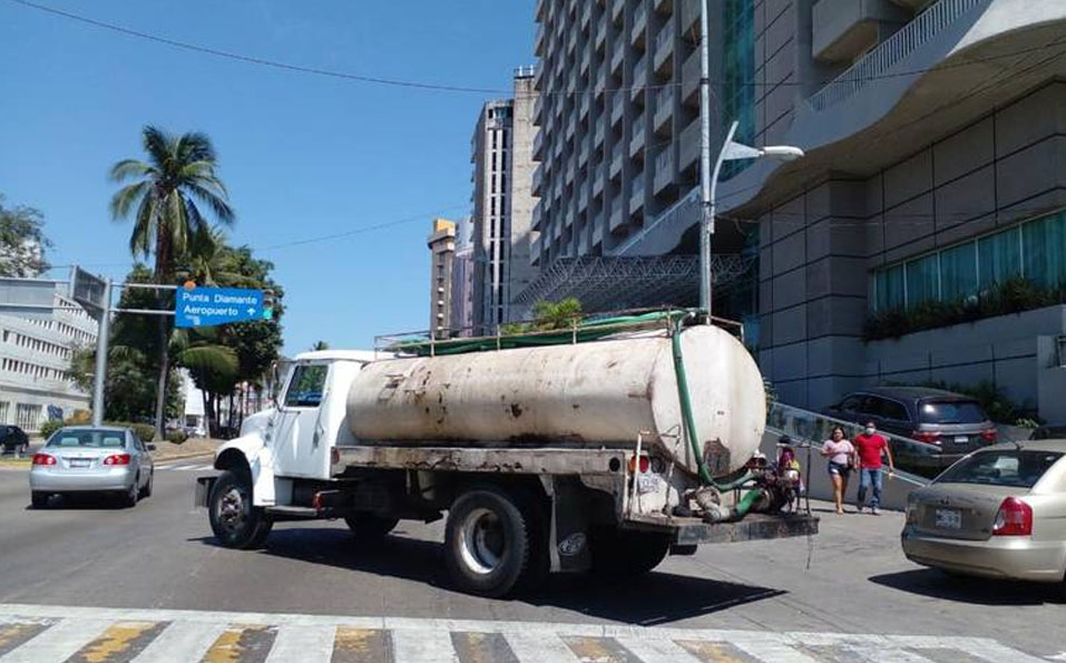 El presidente de la Asociación de Hoteles y Empresas Turísticas de Acapulco (AHETA), Alejandro Domínguez dijo que la falta de agua potable en la zona turística se ha vuelto más esporádica y es más constante que los hoteles y restaurantes tenga que abastecerse de agua potable a través de pipas con un costo de 700 a mil pesos.