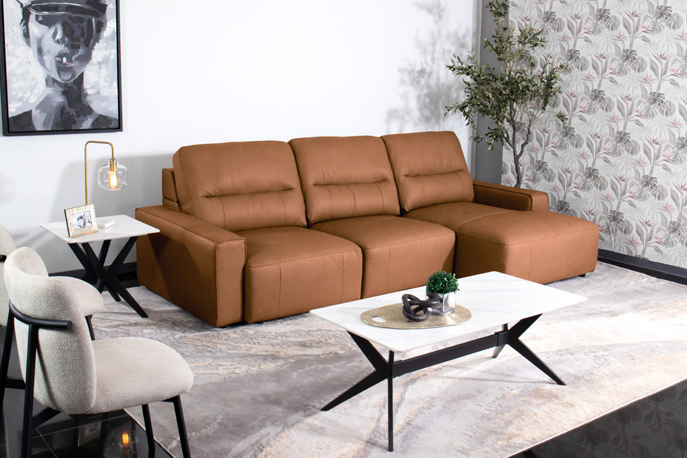 Aunque los cueros marrones o negros siguen siendo los más demandados, la experta en Tendencias de Casa de las Lomas, Camila Anaya, comenta que una apuesta para este año es el color camel y el beige. Una paleta de colores cálidos es capaz de subir la temperatura de un ambiente con suavidad, regalar sensación de confort y combinar con muchos tonos distintos, adaptándose a cada estilo decorativo.  Como la Sala Seccional Deslizable 3 Piezas Lynn Beige, que además de aportar luz, calidez y vida a la estancia,  cuenta con dos mecanismos deslizables eléctricos que permiten duplicar el área de descanso al tamaño de una cama matrimonial, perfecta para la sala, recámara o el estudio.
