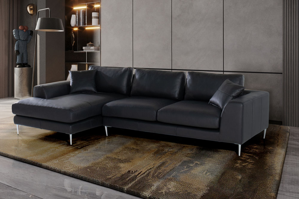 Un ejemplo es la Sala en L de Piel Manhattan Negro, que brinda una comodidad excepcional, gracias a su espuma de alta densidad en respaldos y asientos.