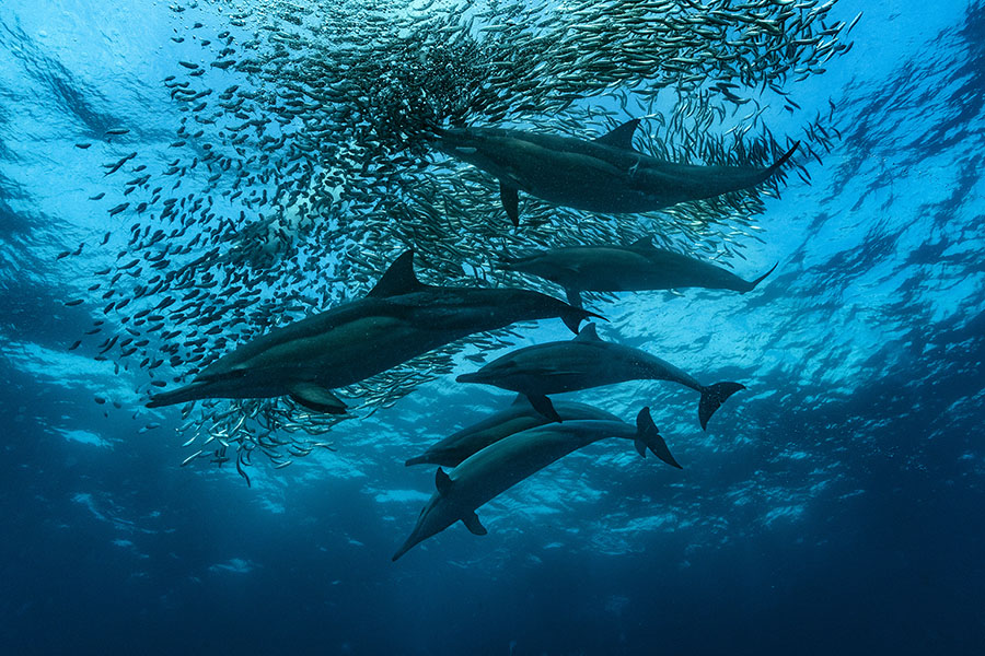 Cada año, un impulso animal fuera de lo común estremece la costa este de Sudáfrica. Cuando llega el invierno austral, las corrientes oceánicas inducidas por el clima crean un corredor migratorio en el que se adentran miles de sardinas. Es el comienzo de un largo viaje de más de 1500 kilómetros. Desde la bahía de Algoa hasta la costa sur de Kwazulu Natal, se forman bancos gigantescos de varios kilómetros de longitud, oscureciendo el mar. Casi instantáneamente, decenas de miles de delfines, tiburones blancos, lobos marinos, ballenas jorobadas, alcatraces del Cabo y rorcuales de Bryde se unen a la fiesta, dando lugar a escenas de depredación sin igual. En términos de biomasa, es la mayor migración del reino animal.